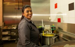 Om meer kans te maken bij de schaarse banen buiten de avonduren wilde Ramcharan graag hulp bij het solliciteren. “Ik heb een coachingsgesprek gevoerd over mijn mogelijkheden. Ook kreeg ik ondersteuning bij het schrijven van mijn cv en sollicitatiebrieven. Hierdoor kon ik zelf beter solliciteren en werd ik al snel aangenomen als kok in de kantine bij de Fontys Hogeschool in Eindhoven. Ik begon met 25 uur en werk nu 30 uur. Voor mij is dat perfect. Ik zit hier echt op mijn plek.”