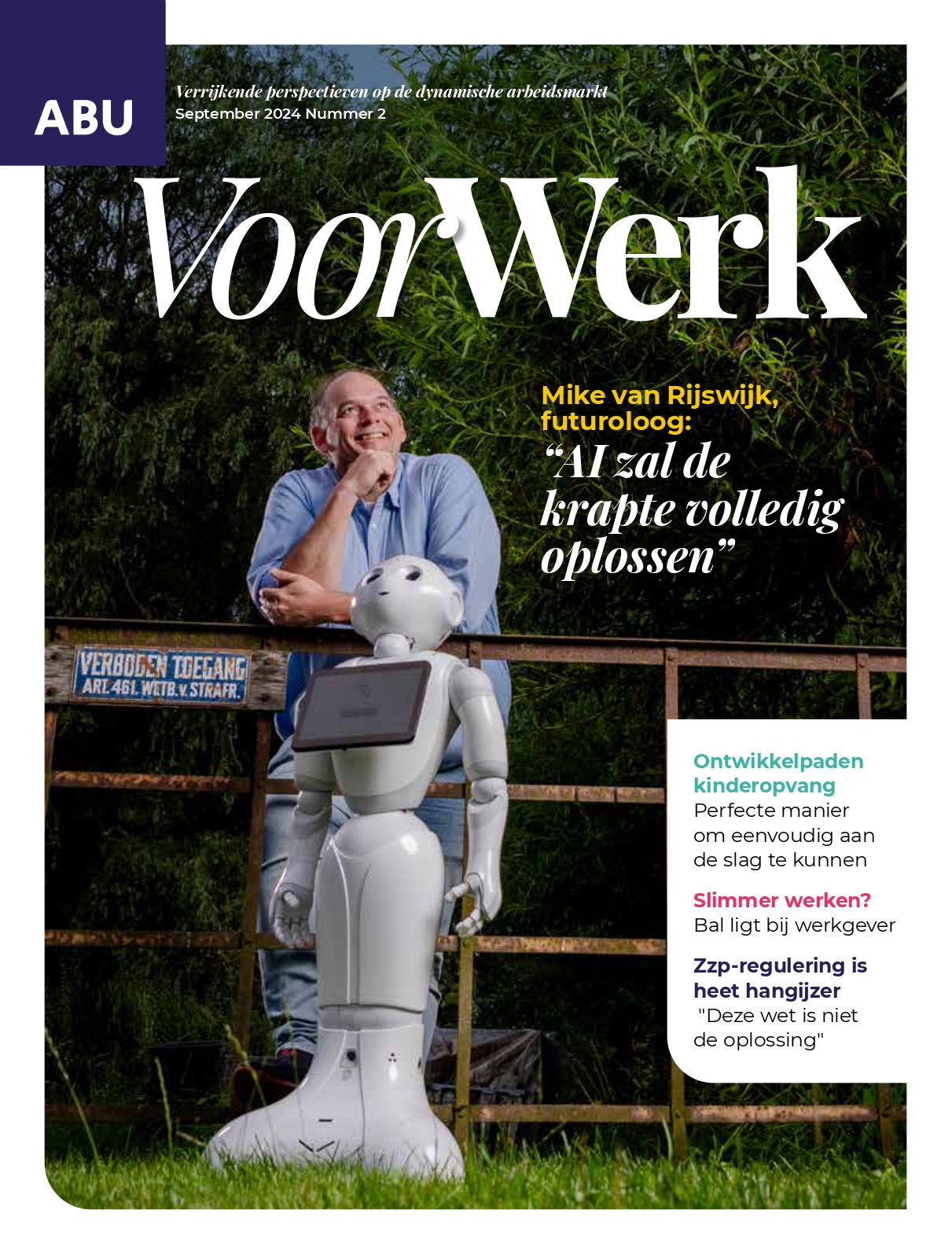 VoorWerk is het magazine van de ABU. Bestemd voor ABU-leden, politici, beleidsmakers, bestuurders, ondernemers en media. VoorWerk informeert over ontwikkelingen op de arbeidsmarkt en binnen de wereld van flexibel werk. Het blad laat het maatschappelijk belang zien van werk voor een waardig bestaan en hoe dit goed georganiseerd kan worden.